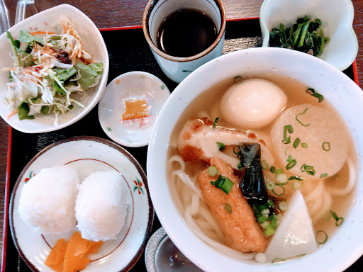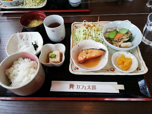 安い。このランチはコーヒー付きで税込880円です。店内広め。椅子とテーブルは人数に合わせて変更していただけるようですよ。テラス席もありました。平日のお昼なのでお客様はマダムが多かった、っていうかご近所マダムのお城っぽく見えました。 この日は鮭の煮浸し?だったかな、それと豚肉のなんとかって言う炒めものがメインのおかず。最初、どちらかをメインで選択するのかと思いきや、本日のおかずでございます、とのことで驚き。 安さはピカイチですが、ちょっと味付けが濃い。濃いというか、塩辛い。あっさりした酢の物か何か小鉢が欲しかったかなー。というわけで星4つで。 お隣には安い食材を扱うお店がありました。多分、わざわざ車で買い出しに行かずとも、この店のもので食材は事足ります、というコンセプトかな? 駐車場広い...
