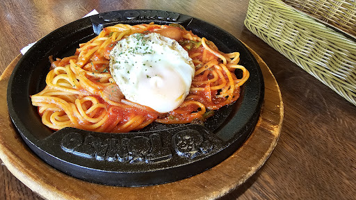 トマト&オニオンは福知山で行って以来でした。今日は年末のせいか目的のお店が開いてない所が多く結果久し振りのトマオニランチになりました。8組程待って案内は30分後でした。 オーダーはタブレットからになりますがメニューが以前よりかなり多くなった気がしました。 弾丸ハンバーグとナポリタンを頼みました。 ドリンクバーのオレンジ、アップルジュースも濃縮還元とはいえ100%なところが◎でした。 このてのチェーンにしては味、価格、サービスは上出来と思いました。以前と比べて評価アップです。カジュアルさを考えれば気兼ねなく利用出来るところが良かったです。駐車場もスーパーと共用なので困りませんでした。 又気軽...
