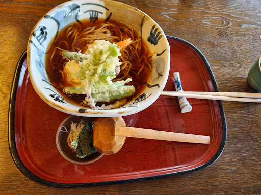 Read more由志園の有料庭園の入口手前にあり素晴らしい日本庭園を見ながら食事をすることが出来る。そのためか価格はやや高め。大根島産の蕎麦を使った手打ち蕎麦が名物だが挽きぐるみの出雲蕎麦とは異なり喉越しの良い細麺で蕎麦は石臼で自家製粉のものを使う。日本経済新聞にも取り上げられたが華道家の假屋崎省吾氏は11年ほど由志園で個展を開いており、その作業時にはこの竹りんで「天せいろ蕎麦」を好んで食べるとの事。出汁は島根県産醤油を使ったやや辛めの味。天せいろの天ぷらは海老の代わりに野菜に変更することも出来る。ただ早春の時期でもふきのとうやタラの芽のような山菜の天ぷらが無いのは残念。蕎麦の量は関東のせいろに比べれば多い。スマホ決済等のキ...