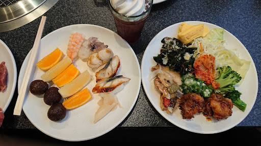 Read more요나고 여행 2일째 방문한 고기구이 가게. 우리나라 대한민국의 무한리필 고깃집과 비슷한 느낌. 매장은 넓지만 뭔가 정신없는 분위기, 초밥, 소고기, 돼지고기, 닭고기, 아이스크림, 카레, 타코야키, 소바 등등 음식의 종류도 다양한데 딱히 입맛을 사로 잡을만한 것이 없음. 무한리필 고깃집이 다 그렇긴 하지만 신선한 느낌의 음식같지가 않고 불은 왜 이렇게 화력이 쎈지, 한국처럼 조절이 안됨. ㅋㅋ뭘까 캠프파이어 하는 분위기임. 환기도 잘 안되고 정말 ㅋㅋㅋ내가 방문했을 땐 애기가 있는 가족단위나 고등학생?중학생정도로 보이는 남학생들 무리 등이 주요 손님이였음. 그냥 큰 기대 안하고 무엇이든 가리지 않고 음식이라면 뭐든지 먹는...