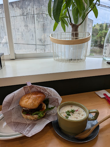 いろいろあるので何がいいかなーと 考えてたら、オーナーからクラムチャウダーあるよの一言! なるほど決定!! ハンバーガーも一緒にいただきます