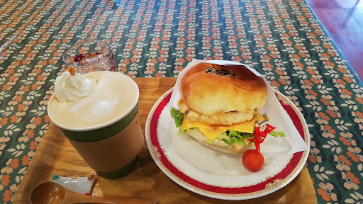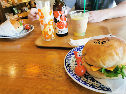 Read moreEn sortant de notre onsen, nous cherchions un restaurant. Lundi midi 13h15...mauvaise idée presque tout était fermé ! Sauf ce petit café veggie très sympa. Il ne propose que 2 petits plats : hamburger de tofu mariné au miso et hamburger de tofu au fromage. Nous les avons pris et c'était très très bon !! Ce n'est pas super copieux mais suffisant. Nous avons pris un cidre à la fraise et un jus de pomme très bon. L'ambiance est douce et l'équipe adorable. On a passé un très bon moment. Les desserts et spécialité de café ont l'air très bonnes même si nous ne les avons pas testé directement. Il y a des boutiques dans le bâtiment, très mignon ! Expérience...