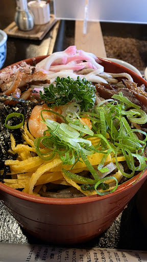 ย ย ย Read moreCame out here to try some local soba and it was a pretty good choice! I came at lunchtime, but there was a few stops still open. But once I sat down, there was a small line outside. The older lady quickly greeted me and got me seated with some tea. I forgot what it's called on the menuz but I ordered their special three type soba special. I liked this because I could try three different toppings without having to order too much food. The side dishes and little dessert...
