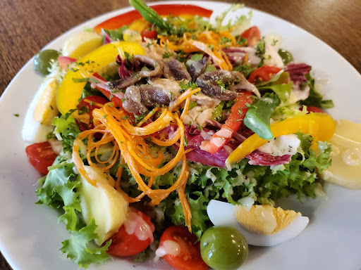 This is a small place with about six tables. We made a reservation. Our plates included: salad niçoise, duck confit, steak and a cheese course. An organic wine from Bourdeaux paired nicely with the dishes.