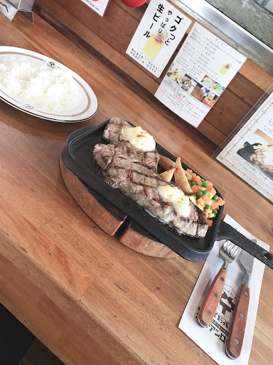 ランチタイムではボリュームある柔らかいステーキが安価でいただけます。 基本は昼も夜も同じメニューになりますが、ランチのみステーキが通常メニューよりお得です。 料理にはいずれもライスとサラダ、食後のコーヒーかデザートが付きます。 牛150gのステーキはしっかり厚みがありますが、筋もなく柔らかいです。 オージービーフの成形肉ではありますが淡泊な赤身ながら肉質も良く肉汁もあり、下味にスパイスを薄く感じる程度の優しい味わいです。 ステーキソースなどはなく、ガーリックバター、醤油、塩、胡椒のみでいただくシンプルなステーキは今の時代どうなのかなとも感じます。 肉量や肉質を考えると、セットで1000円ほどでいただけるならかなり安価だと感じます。 ドレッシングも売りにしているようですがセットサラダはキャベツのみで薄味の優しいさっぱりしたものです。 ハンバーグは薄くしっかり焼かれたもので脂が少なくボソボソ感もあります。 下味はスパイスがしっかり効いており、バターで油分や塩味も足すことができます。 その他一品料理や酒類は少ない反面、ライスなどご飯ものは軽いため、シチュエーション的に悩ましい気もします。 近年は赤身ブームということもありしっかり目の赤身を提供するお店も多いですが、柔らかい赤身をいただきたい...