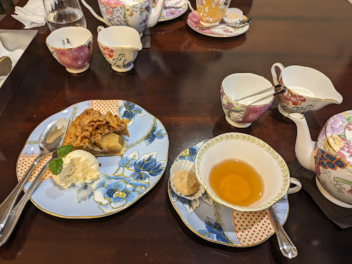 The tea selection is nothing short of extraordinary, featuring a wide array of aromatic teas, each carefully chosen by the tea consultant. The expertly brewed tea allows the distinct characteristics of each leaf to shine, offering a moment of pure bliss. From New York's renowned tea brand, HARNEY & SONS, to other exquisite varieties, there is something to delight every palate. On this occasion, I indulged in a pot of Darjeeling and some raw chocolate. The rich and nuanced flavor of the Darjeeling, combined with the decadent, smooth texture of the raw chocolate, created a harmonious and unforgettable pairing. The impeccable service, characterized by the staff's attentiveness and warmth, was reminiscent of a fine French dining experience. This is the perfect sanctuary for those seeking to unwind and indulge in a moment of refined elegance, savor exceptional teas, or simply rejuvenate their spirit. My only regret was that the three varieties of apple pie were sold out during my visit. I am already looking forward to my next visit, where I can sample the apple pie and their light sandwiches.