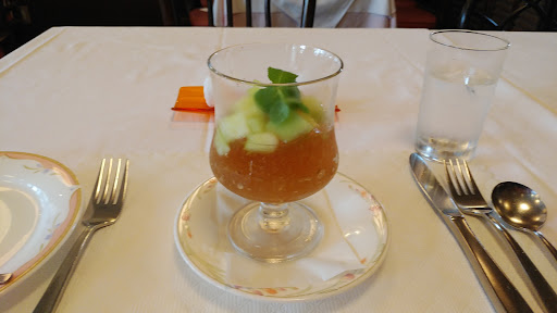 It is an amazing place to go with your partner or with your friends to have a great meal! The course begins with a delicious Consomé soup, along with bread and butter (don't miss it! Worth every bite) and a salad with an amazing seasoning. We then received the main dish. Since we asked for the meat course they delivered us a big plate with high quality meat (maybe fillet mignon), vegetables and a sauce that blended very well. No way I could find in Japan a meat without the fatness that the regular restaurants offers! It is pure meat for a reasonable price. And there is always room for sweets: the desert was interesting and rich! Three kind of sweets to end it up in a happy way! On the day that we went for lunch there was jelly, bread pudding and an especial yuzu sorbet (sherbet maybe). For sure it comes with a drink chosen prior by the beginning. In our case, coffee with milk.