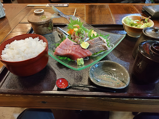 Read more12時ちょうど位に入店して刺身3点を注文し15分位待った?魚って意外と時間かかるのね生なのに。で、届いたごはんがパサパサのカリカリのでした。最後の方はお椀にがっちりくっ付いて集まれ集まれもできない状態(T_T) 刺身4点を注文した友人は私から5分程遅れて配膳されていたので、その間にごはんが炊けたのか、友人はごはん普通だったよって言ってました。友人が魚を食べたいと言うので、子供の頃おんぶお化けをテレビで見て魚が苦手の私が生まれて初めて刺身定食にお金を出しましたが、金額にビビりました。魚って高いのねぇ・・・2100円だしてもお腹いっぱいにはならないのよ・・・(T_T)それとお味噌汁の器がこ洒落てて小さく細長い上に中身が熱くてなかなか持てませんでした指の皮の厚い大人の男なのに(笑)写真の右側に写ってる湯呑みたいな奴です(笑)市場の中にあるってだけでコスパを期待しちゃダメなんですね、特にこういう見た目がすでにこ洒落てて場の雰囲気に合ってないのは特によ?最後にふた言だけ「刺身にサラダ」? 「ソースカツ丼が2480円」???中トロが美味しかっ...