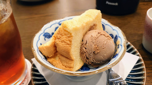 Read more豚の角煮定食を注文。 冬瓜の餡掛けや鴨肉、卵焼きなど付いてきて、豚肉は箸で簡単に切れる程ホロホロ、ご飯も炊きたてで全部美味しかったです。 デザートに米粉のシフォンケーキ+アイスを注文しましたが、シフォンケーキはもっちりした感じで味はあっさりで美味しかったです。 席は全て座席で3グループ程入れて中央にキッズスペースがある部屋と個室になってる部屋があり、キッズスペースを使いたいなら予約した方がいいと思います。 駐車場は8台程停められますが、子連れが多く個別で来る為...