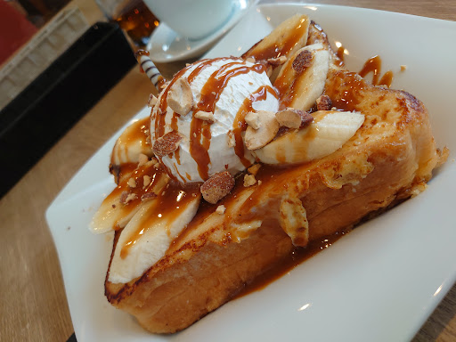 Read more当方喫煙者な為、喫煙席のある喫茶店というだけでありがたいのですが、もちろんコーヒーもフードも美味しいです。 フードメニューもかなり種類がありますよ。 (喫煙席では加熱式タバコのみ。紙巻きはさらに別の喫煙スペースが中にあります) ブレンドコーヒーは苦味がしっかりし、酸味が少ない昔ながらの喫茶店の味わいといった感じで、ある意味安心する味。 写真は期間限定のキャラメルフレンチトーストです。ちなみに中央はアイスクリームではなく生クリームです。 いつもはリーズナブルなメイプルフレンチトースト(ハーフ)ですが、直前にジョギングをしてカロリー消費したので無問題。 トマトラーメンというメニューがあるのですが、まだいただいたことがないので、食する機会があればまたレビューしたいと思います。 駐車場はかなり台数停められますが、手前側は結構埋まりがちなので奥の...