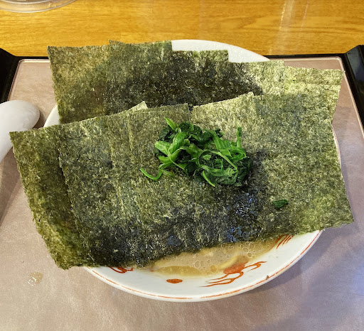海苔増しは6枚。 大きさや厚さは普通。 被せてあるので気になりませんでしたが、 スープに浸すと弱く口に入れると溶けます。 磯の香りが強いタイプで風味はまあまあ良かったです。