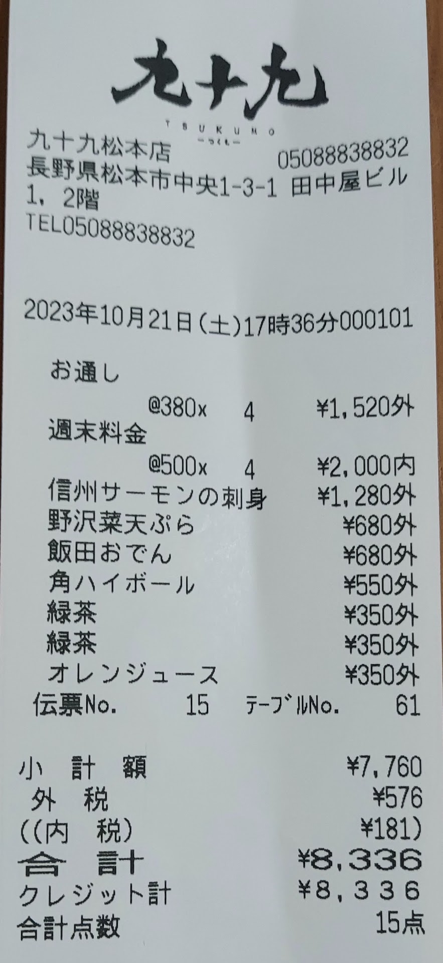 ようやくこの店の経営方針を理解し、まだ遅れている2人は来ていませんでしたが、離席も促されているのでお望み通み帰ろうとし、会計用の伝票を見たところ…まだ来ていない2人の分も含めたお通し代+謎の週末料金が記載されていました。謎の週末料金についてはもちろん先立っての説明はありません。会計の際に2人まだ来ていないことを伝えるとその分の料金は嫌な顔をされながら引いてもらえました。