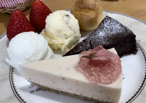 ケーキやサンドイッチも素敵なお皿で出していただけ盛り付けも素敵で、お味はもちろん目も満足です。