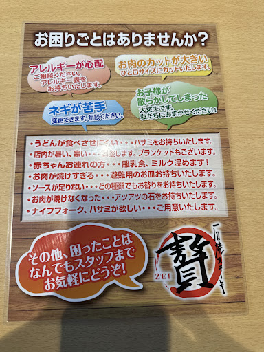 Read moreランチ利用しました! サーロイン食べましたが、赤身系なので脂ギッシュではないです! 個人的には贅ステーキ(かいのみ)まじおすすめです。 お肉柔らかいので、人によってはフォークとナイフいらずかもしれません。お箸は最初用意されますが、もしフォークやナイフ、取り皿など必要なものがあれば用意しますと丁寧な説明書があって、親切だなあと思います!