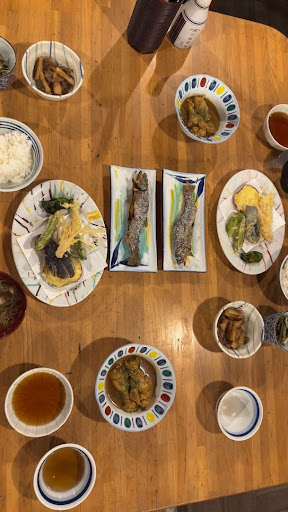 We ordered the grilled Iwana (岩魚) set and the sweet red-bean soup. I had tried whole grilled river fish several times across Japan, but nothing compared to this — the flavor was delicate yet rich, the fish expertly grilled until tender, every bite somehow tasting like the surrounding mountains themselves.