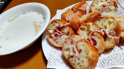 Read more以前妻と、朝の部で購入させて頂きました。自分の前に並んでいらした方にはとっても丁寧な接客で「どこからいらしたんですか?」「フランスパン楽しんでくださいね」などとても気さくで焼き具合なども希望に合わせて貰えて、保存方法の説明があったみたいなので、自分の順番が来るのを楽しみにしていたんですが、いざ自分の順番になり注文したところ「ありがとうございました。」とパンを渡されて帰りました。普通なら何も思わないのですが、前のお客さんにとっても丁寧だっただけに、少し悲しい気持ちになりました。パンは美味しかったのですが自分には保存方法の説明もなかったので2本買った内一本は食べれないくらいカチカチになってしまったので捨ててしまいました。...