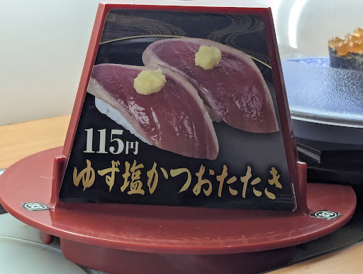 This is one of my favorites because it has a conveyor belt to deliver what you order. Sushiro puts orders on the same belt, which makes you feel like you have to keep an eye on it. Last time they had a beef hamburger, but it wasn't on the menu this time. There was only a fish one. My family got there around 1110 and we could go to a table right away. A little later it was much busier. The sushi was good and my daughter could win the game with the plate return one time out of 25 plates returned....