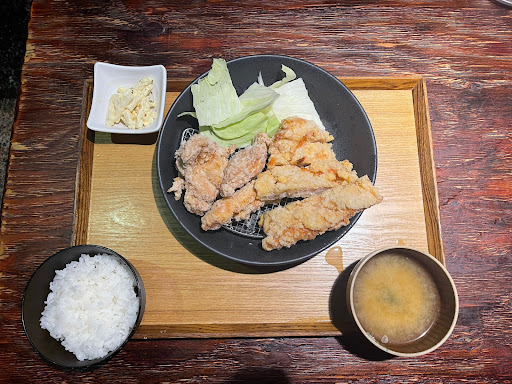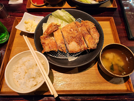 If you've never been here and you're coming to try the famous fried chicken, you can't go wrong just ordering their signature sanzokuyaki set meal. Ours came with a bowl of miso soup, a bowl of white rice, a side of an odd sort of macaroni with a mayonnaise/cheese sauce, and a generous piece of fried chicken that is a challenge for most people to finish. It was perfectly crispy on the outside, flavorful and juicy on the inside, seasoned perfectly, and the perfect comfort food after a long day. In case the language barrier intimidates you, you can just point to what you want on the menu, or you can order the same way we did by saying "sanzokuyaki teeshoku o onegaishimasu" (sanzokuyaki set meal, please). I added on "biiru no jokki" for a large glass/mug of beer to go with it, which paired perfectly. Don't quote me on my Japanese, as I'm still learning, but that worked fine for me!