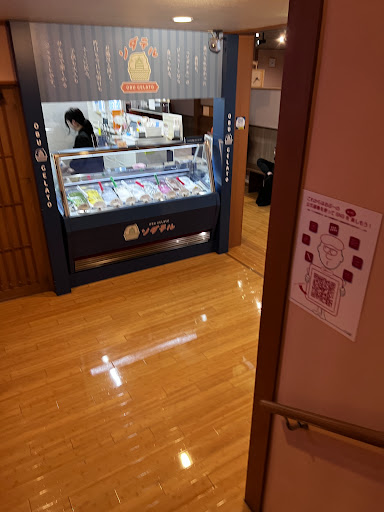 人気温泉施設が入館しなくても購入出来るジェラート屋さんを作ったようです。 温泉施設内で販売していたジェラートが人気だったから作ったのかもしれませんが、ジェラート専門店と比べると今ひとつだと感じました。 盛り方も残念な感じでした。 東屋風のイートインスペースはオシャレですが、ゴミ箱が無い上、こぼしたジェラートが机のあちこちに飛び散っているという有様。 「お風呂屋さんのアイス」であって「ジェラート屋さんのアイス」ではない...