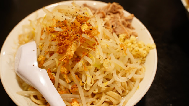 凌駕系列のいわゆる二郎系専門店と言っても良いでしょう。 味も盛りも店の雰囲気も、二郎よりはライトな感じなので気軽に行けます。 注文時にアブラの量・野菜(もやし)の量・ニンニクの量の大小を聞かれます。 普通でも多めなのでお好みで調整してください、麺の量も減らすことができます。 大食いの男性でも並でかなり満足、小食の方は減らしてもらいましょう。 二郎系なのでご愛敬ですが、アブラは結構多いので初挑戦の方は少なめにしたほうがいいかもしれません。 麺は中太麺と太麺の間で、意外とコシがあります。 ほぐしチャーシューもよく、がっつりだけども万人受けする味のラーメンです。 二郎ほどきつくなく、でもがっつり食べたいというときにはこちらです。 テーブル席、座敷席もあり、家族連れも多くみられる、そんな二郎系のお店です。