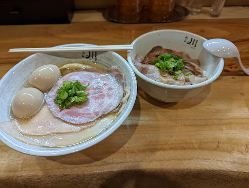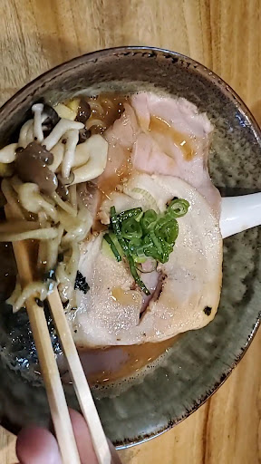 Read more味は自分の好みだが、一寸気になるポイントがある 非常に人気がある店。前回は渋滞のため、2分遅れて到着し、入店出来なかった。今回は2回目で堪能できた。 11席のカウンターのみ、自動販売機のチケット制、駐車場は他の店舗と共有で、31台分確保、という状況。 鶏ガラベースの塩、醤油、味噌味が中心で、つけ麺もあるが、個人的には、つけ麺など、邪道だと思っているので、基本的には選ばない。これまでに味わってきた、島田市のル・デッサン、奏心、名古屋の紫陽花、四日市の鉢丿葦葉と同系統。鴨を使うと、味に深みが増し、値段が跳ね上がる、という傾向にある。この店は鴨を使っていないが、何れの店も、一寸塩味が効きすぎ、という点でも共通している。要は、トレンド(流行の傾向)に乗っているということ。一宮のこしがやのような複雑な味ではなく、単純な味が好まれる傾向をガッチリ握っているようだ。 店主と女将(?)二人なので、サービスはセルフの部分がある。しかし、システム化することで、スムーズな接客が行われている。 雰囲気は、一般的だ。価格が手頃のため、客層は庶民的となる。ということは、マナーの悪い客層が厚くなる。具体的にいうと、駐車は左方向の一方通行だが、逆行する輩が多い。食事の所作を知らない者が多いのは、家庭教育の中で、躾られていないことになる。ヘッドフォーンを付けたまま食べている奴もいた。箸とレンゲを両手に持つのは、マナー違反だが、知らない者が多過ぎて、容認するしかない。小笠原流礼法によれば、「片手に道具、片手に器」と書いてあるし、家庭教育の中で、幼少期に叩き込まれるのが普通ではないか。つまり、これを励行していない輩が多くなる。個人的にはこういう連中の食べる姿を見ていると、気分が悪い。そういう理由で...