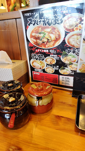 Read more「麺屋 龍」は松阪市にある、天理系ラーメン屋さんです。 場所は「レクサス松阪」近く。駐車場は比較的大きめで駐車しやすいです。 私は「スタミナ龍麺」を頼みました。見た目が真っ赤だったのでまずは一口食べましたが、「ん?」と違和感が。麺は若干のちぢれ麺で、見た目に反してピリ辛でもなく、意外とあっさり系の美味しい味でしたが、「天理系」を謳っているのにもかかわらずパンチの無いラーメンでした。しかし、備え付けてある「にんにく醤油」を一杯入れてみると味が激変し、パンチの効いたまさに天理系ラーメンになりました!調子に乗ってもう二杯、計三杯ほど入れるとさらにニンニクがガツンと効いた好みの味へと変化しました!しかし、これは入れ過ぎたと食べた直後に反省。自分でも分かる程に自分が「にんにく臭い」のです・・・。個人的には一杯で止めておけばおいしく頂けるラーメンだと思います。一口目は何も入れずに食べて、二口目は「にんにく醤油」を入れてみてください。ラーメンの味の性格がガラっ!と変わるのが分かると思います。 価格もお値打ちで良いと思います。ただ、白菜も少なめで少し物足りなさを感じてしまったのは事実です。 自分好みに「カスタム」出来るなかなか面白いラーメンだなと。 総合的な結...