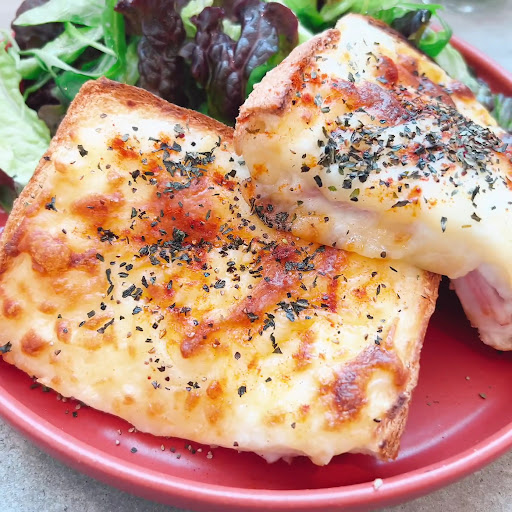 クロックムッシュはパンの端はカリッと、全体的にチーズが香ばしく、中はベシャメルソースがトロトロで美味しかったです。 クロックムッシュがしっかりなので、サラダのシンプルな味付けも丁度良いですね。
