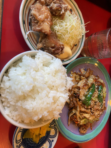 回鍋肉は甘めなタレにキャベツ・お肉たっぷりでうまい。濃いめの味付けなので、ご飯にめちゃくちゃ合う。唐揚げは胸肉なのか、すこしパサっとしてる感じやけど、もう少しジューシーな感じが好きですね。