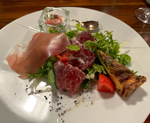 Read more以前から気になっていて今日、初めて行きましたが言うことなしです!フランスの旗が唯一の目印で分かりにくいですが、その分、別世界に来たような隠れ家的存在でレトロな雰囲気が落ち着きます。ちょっとリッチなお値段ですが野菜も含めて全て美味しいです!今まで進んで野菜を食べたいと思ったことは初めてで素材にもこだわってらっしゃるんだなぁというのがよく分かりました。このお店だけのオリジナルのお酒や飲み物もあって星数が少ないのが理解できません・・・。店主さんも1人で営んでおりましたが要領がよくあまり待つことがなかったです。特別な時やちょっとしたご褒美にまた来たい...