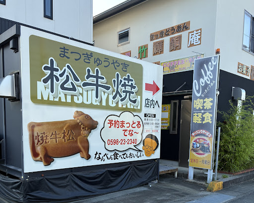 Read more松牛焼きを雑誌て拝見し、迷いながら伺いました。ランチもできるとのことでランチして松牛焼きを購入して帰りました。ランチはワンコインのブラックカレー(ピリ辛)と薬膳カレーを頼みました。大食い主人は、朝からイベントに行った先で色々購入し食べたのでカレー一つで大丈夫と言いましたが、ワンコインでも普通にちゃんと量はあり美味しかったです。カレー皿にポテトサラダと福神漬けが混ざらないようにアルミカップに入れたものを添えてくださって主人みたいに混ざると嫌な人には嬉しかったです。味見でブラックカレーを頂きましたが、美味しかったです。薬膳カレーはキーマカレーみたいに色々な薬膳がはいり癖もなく美味しいと思いました。ドリンクはプラス200円で付けれるのでアイスコーヒーをお願いしました。カレーにはオレンジが一切れついていて果物好きな私達は嬉しいと思いました。欲を言えば追加料金でサラダとか付けれればいいなぁと思いました。 松牛焼は焼いて置くものではないらしいです。なので店内飲食用にか一個、二個しかないらしく必要なのをお願いして焼いて頂けるのが出来立てを食べれて良いなと思いました。 あんバター、松阪牛いりの、今月のコーヒーの3種類を購入して帰りました。大きさは大と小がありわかりやすいように見本もありました。うちは中身をしっかり味わいたいので大をお願いしましたがボリュームがあり美味しったです。松阪牛のしぐれ煮は一番きたいしてなかったんですが、あまり生姜が効いてなく外と違和感なく食べれました。 牛肉の香りが口の中に広がり一番美味しったです。ペイペイ払いも可能でしたし、松牛焼きのみスタンプカードがあるの...