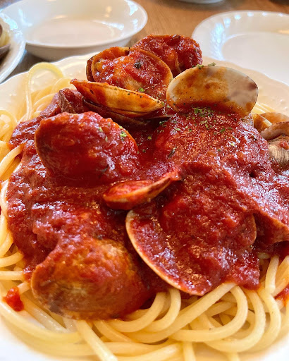 メニューは沢山あり迷いましたがやっぱり明太子クリーム(S)に。 それとガーリックトーストも。 パスタは安定の味 とても美味しかったです♪ 量もSで十分ですね 他店の普通サイズくらいあるんじゃ無いかなぁ