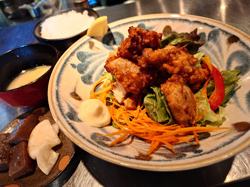 メニューはアジアンテイストな多国籍料理を中心に、おばんざい的な和風の料理もあります。 今回はランチメニューから「若鶏の塩麹唐揚げ880円」を注文。 サクサク&ジューシーな唐揚げで、味付けはサッパリめ。 彩り良いサラダも添えられ、見た目的にも味的にも美味しくいただきました。 あと副菜のコンニャクと粕汁が、とても気に入りました。 価格以上にシッカリと手を掛けて作り込んでる印象です。