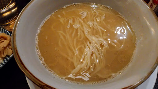 230620 つけ麺を注文。濃い目のスープに太麺がからまって美味しかったです。スープ割もできました。