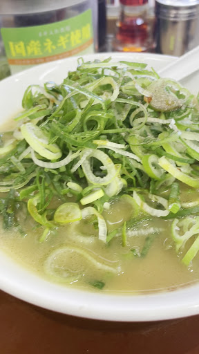 その大学生時代から親しんできた豚骨醤油「ラーメン並¥690」は、スープは醤油感のある豚骨で昔懐かしい屋台の味。濃さが足らない人は卓上"ラーメンのたれ"があるので、それを2周半ぐらい回し入れるのおすすめです。そしてここのラーメンの特徴は国産ネギ入れ放題に尽きる!ほんとネギ好きにはたまらんですよね。旨辛にんとんで味変するのもGoodです。