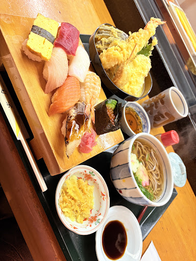 Read moreお寿司ランチセットをいただきました。盛り合わせ寿司・天ぷら・赤だし・茶碗蒸しをいただいて、お値打ちでした。天ぷらの盛り合わせの中に柿の天ぷらがあり、美味しかったです。熱々の茶碗蒸しもとても美味しかったです。季節感あって、良いお昼御飯でした。 お店の雰囲気も素敵で、まさに昭和ノスタルジックなお寿司屋さんでした。粋な大将と気立ての良い女将さんがいてく...