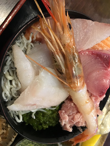 The menu is entirely in Japanese and there are no pictures. Don't worry though, point to anything and it will be some of the best seafood you've ever eaten. We had the sashimi bowl and "B" set which included a sashimi bowl, fried oysters, boiled oysters, miso and pickles. Both were amazing. The sashimi bowl is seasonal and local. It's almost 50/50 fish and rice and well worth the price (1680 yen). The oysters are winter only I believe but delicious and enormous. Easily one of the best restaurants we've visited in Japan and...