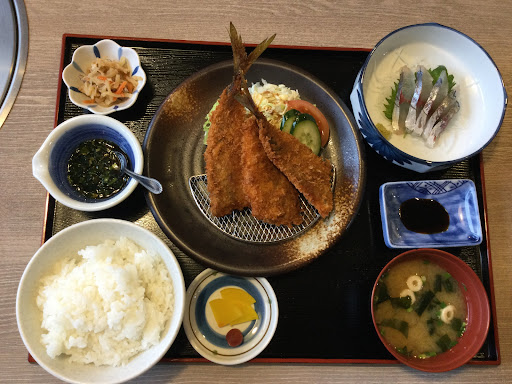 肝心のアジフライは、正直物足りなかった。アジが小ぶりで、味わいもやや浅い印象。もし近所なら、まあまあ良いけど、訪れる労力等との引き合いで。 衣は「バリバリザクザク」ではなく、サクサクとして存在感は弱め。もっと、ザクザク系の方が好き。スーパーにありがちな小麦粉多めのむっちりしたタイプは嫌いなので、それよりは良かった。