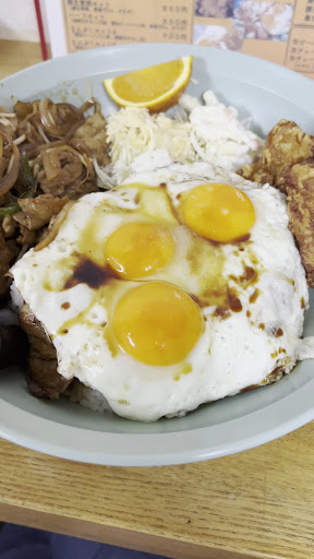 Read more入り口付近の客用カウンターに業務用のプラケースがドーンと置いてあるのに若干の不安を覚え店内に。 どうにも雑然とした印象で清潔感に欠ける店内。 テレビの音声をわざわざカウンターにまで遠隔スピーカ置いて聞かせる配慮が逆にキツイ。 そこまでしてバラエティー見たく無い。 自分地上波のバラエティーが死ぬほど苦手なもので。 メインの焼き豚たまご飯は並、大盛り、特盛。