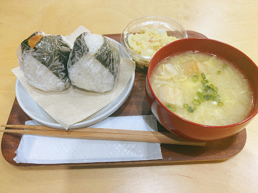 Read more昼前でテーブルが空いていたので、イートインで利用しました。 具の種類が豊富で迷ったのですが、おにぎりの中でも特に好きな塩と梅干しを注文。 ちょうどショーケースになかったので、新しく握っていただきました。 ポテトサラダとお味噌汁もいただきました。