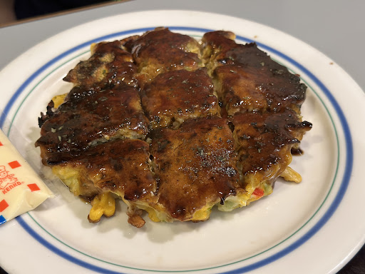 Read moreMedium sized restaurant with very attentive service and a few simpler local dishes like Mitsuhamayaki (Matsuyama style Okonomiyaki with noodles). Our Okonomiyaki was prepared in an open kitchen and served to a teppan in our table to keep it hot. Condiments could have been better (mayonaise came in small plastic bags, katsuobushi was powder) but the food was tasty. English menu...