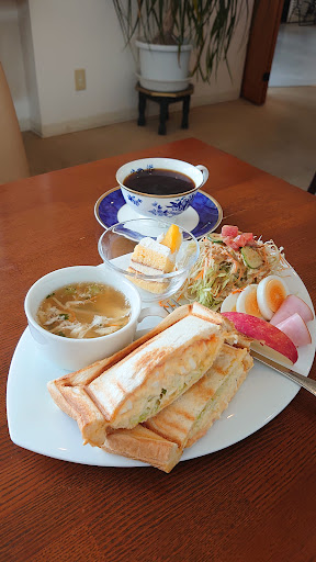 Read moreひどく愛想の悪い店員と愛想の良い店員がいる。 モーニング1,000円弱は高いな。 ピザの生地は自家製らしいが風味無し。 サンプルより全てが4~8割減くらい。 茹で卵は薄いのが3切れで黄身は1枚に薄っすらついている感じ。 黄身は誰に提供されるの? フルーツは5mm厚のリンゴスライスが1枚。 詐欺...