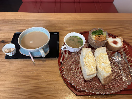 朝だったのでモーニングが飲み物代➕300えんで食べることができ エッグトーストを頼みました。 とてもボリュームのあるトーストにサンドされた卵はゴロゴロ!お味噌汁がまた一段と美味しくて。 器も可愛くてお客様の雰囲気にあったコップを選んでくださるとのこと。 人から見た感じはこんなんなんだと面白いと思いました。 ランチもされてるみたいなので全メニュー制覇でき...