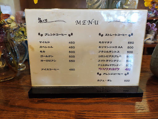 Read more土曜日の11:30ころ訪問。 女将さんが「コーヒーとモーニングしかありません」との事。 折角なのでモーニングをいただきました。 結構豪華でモーニングと言うよりランチになってしまいました。 果物、ヨーグルト、トーストが美味しかったです。 コーヒー豆を挽いてもらいお持ち帰りしました。 常連さんグループの声が大きくてゆっくり出...