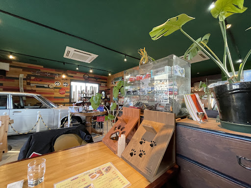 Read more道路側から看板が見えにくいですが、松山市内から行くと右側に見えます。バイクは、右側に土の駐輪場が有ります。10台位は停めれそうですね!ドアを入ると正面にカウンタが有ります。右側にテーブル席がありました。ハンバーグを頂きました。外はカリッと仕上がって中は熱い!とても美味しいかったです。コーヒーは保温出来るカップでした。多分古いブルーバードだと思いますが店内にありました。テーブルの下側に物置が有るのでジャケットも置けました。テーブルにはヘルメット置場有ります。ライダーに...