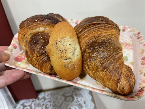 Read more住宅街にあるご夫婦でされている小さなパン屋さん。 お店の看板にクロワッサンのイラストがあり様々な種類のクロワッサンがありますが、購入数の制限があります。 惣菜系のパンが充実していて値段も手頃で味も美味しいです。 小さなお店ですがそれなりの種類があるので、1種類あたりの数が少ないのである程度の個数が欲しい場合は事前...