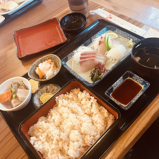 Read moreレストランふわりに、ランチ初めて伺いました。 ふわりには、何度も来ていましたが、レストランには入ったことがなかったのですが、もっと早く入っていれば!と思ったくらい大満足でした。 木曜日以外は、10時半〜14時ラストオーダーで14時30分まで。 注文は席で聞いてくれます。お水やお手拭きは持ってくてくれます。 温かいお茶はセルフサービスで、無料でいただけます。 入口入った左手のケースに、本日のメニューのイメージが御膳で並んでます。 お店の方に何がオススメか伺うと迷わず「剣先いか定食」です。と教えていただきました。 北条名物の鯛めしもあります。北条名物の鯛めしは、炊き込みご飯の鯛めしです。 剣先いか定食は、1800円で、剣先いかの味付きの天ぷら(ゲソやミミのところ)と剣先いかのお刺身(あまくて美味しい)と小鉢が2つ付いて超幸せ。 お刺身定食1400円は、天ぷら付きで鮮度抜群のお刺身3種盛(当日は、コリコリのカンパチ3切れ、コリコリの鯛3切れ、中トロ2切れ)小鉢が2つも着いて大満足。 鯛めし定食1,350円は、お重に入った鯛めしとお刺身と小鉢2つ付き。 鯛めし定食以外は、プラス150円で白ご飯を鯛めしに変更も出来ます。 テイクアウトで鯛めしを持ち帰ることも出来ます。 愛媛に友人を招待した時に、ぜひ来たいお店...