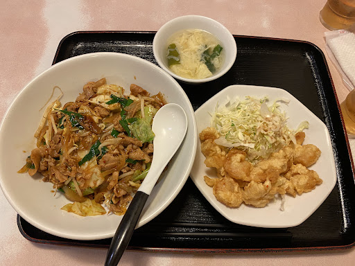 回鍋肉丼が人気とのことで、回鍋肉丼とエビ天のセットとチャーシューメンと炒飯と唐揚げのセットを注文。