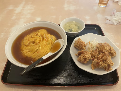 ラーメンは麺が少し変わっていて、細麺の卵りぷりとした食感が独特で面白かった。 スープは可もなく不可もなくいたって普通。