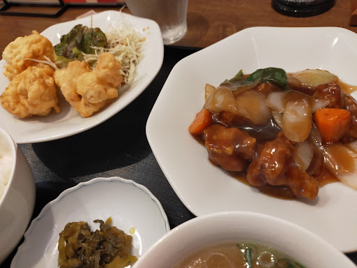 Read more平日11時40分、ランチに一人で入店。先のお客さんは4、5人でした。入店前から「酢豚定食」と決めていたので着席と同時に注文しましたが、提供されるのに30分かかりました。 さすがに時間がかかりすぎです。 忘れられているのか、と不安になりました。 時間に余裕があり、焦ることもなかったのですが、かなり辛かったです。 味の方は、セットにあったエビの天ぷらが衣が多くもっさりしていて今ひとつでした。 酢豚は普通に美味しかったですが、待ち時間のこともあり楽しめませんでした...