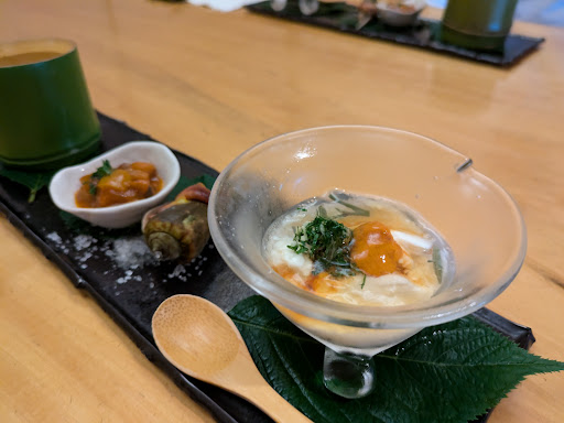 夫婦水入らずで久しぶりにごはん食べに行きました。 門口は小さく、入り口(玄関)はこじんまりとしていますが、程よい和風モダンのつくりです。 今回は個室6人くらい入れそうなところに、2人で広々と使いました。エアコンも自由にセルフ設定は気楽でした。 10000円コースにしましたが、5000円コースがベースでそれにプラスアルファになりますという説明でしたが、大人男性でもアルコール飲みながら満腹になるボリュームで満足しています。 味はどれも美味しく、こんな感じにするんだねーなど創作料理というだけあるねーと話していました。全てお箸でいただけてストレスなく最後まで楽しめました。 だいたい2時間くらいゆっくりだしてくれますが、インターホンの様なベルでスタッフさんも呼べるし居心地良かったです。 アルコールは色々あって、ワインの高額のものも‼︎びっくりしましたが良い勉強になりました。ノンアルコールも充実してい...